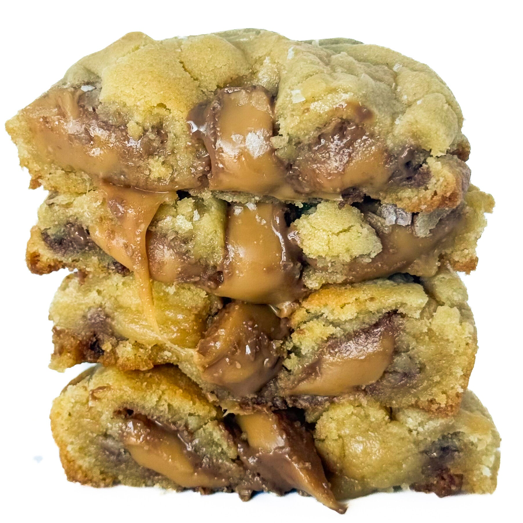 Vår nydelig cookie med dumle sjokolade, med et dryss havsalt på toppen.